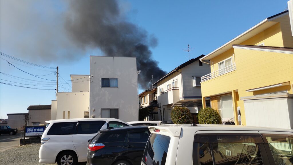 火事ですね、近くてすごく燃えています。近くまで行ってみます。