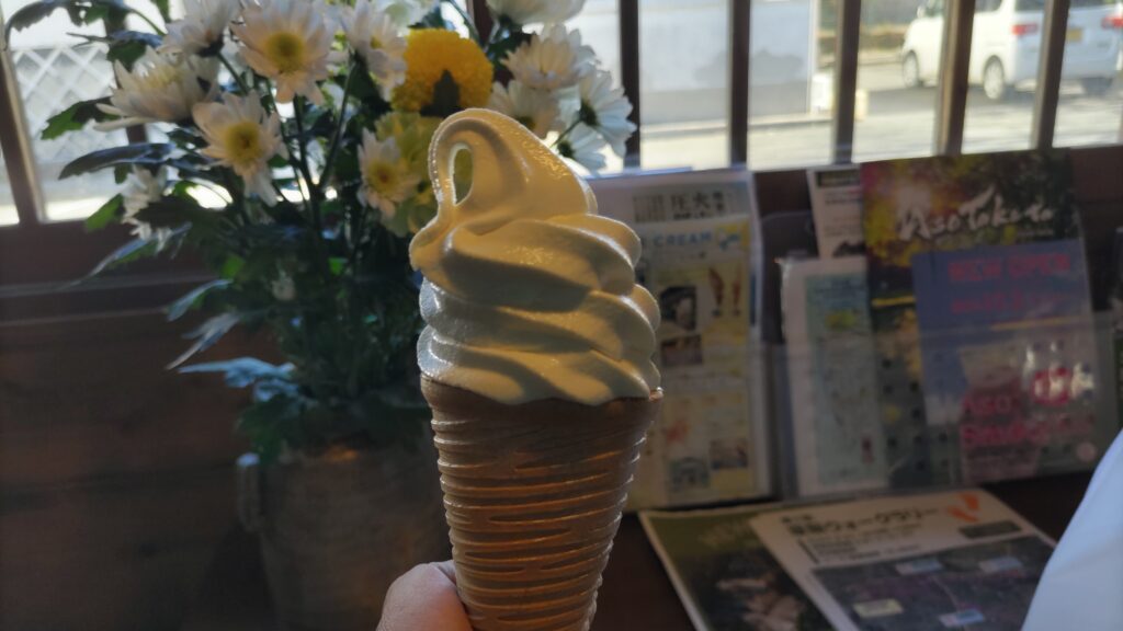 田舎の風景を堪能してもらおうと、普段は出かけない日曜日に阿蘇に行ってみます。