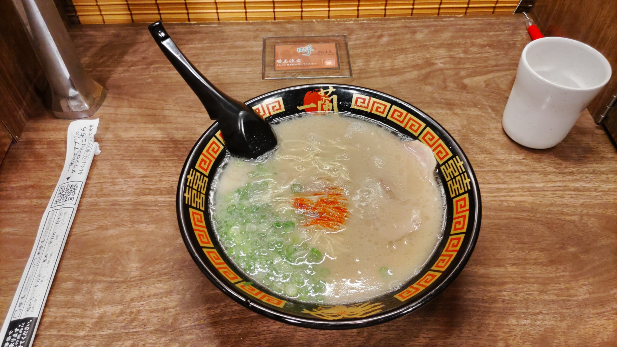博多駅の地下をふらついていたら、奥の方に人が並んでいたので、なんだろうと思って行ったら一蘭だったのですね。
