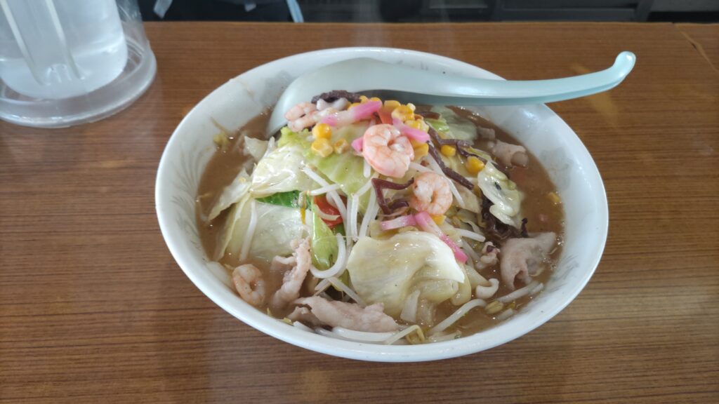 このちゃんぽん、見た目は多そうに見えないのですが、野菜だけで600g入っており、結構なボリュームで汗が止まりません。