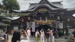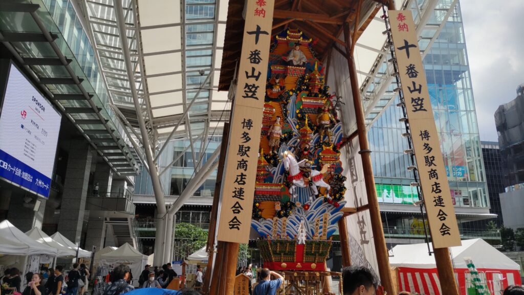 最後に、博多駅前に飾ってある山笠を見ながら博多バスターミナルへ向かいます。