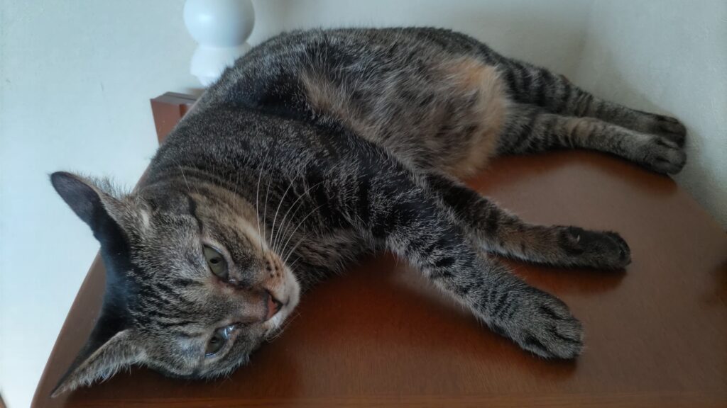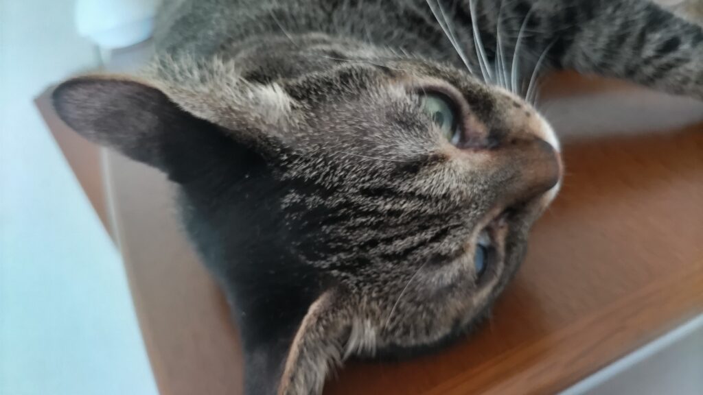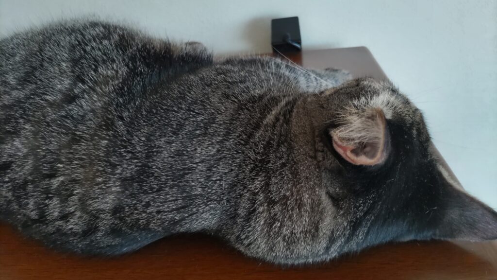 イカ耳のまま、微動だにしません。バテているみたいですね。クーラーをつけましょう。