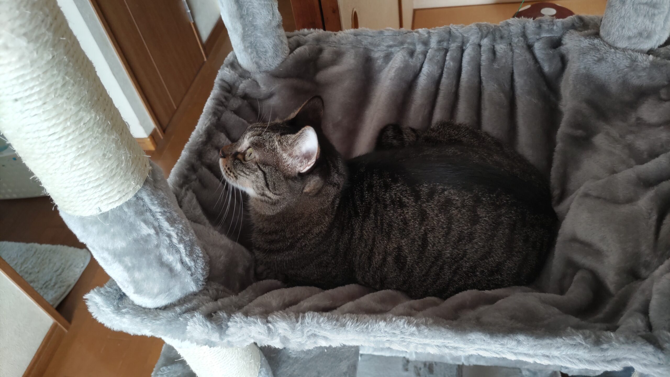 さて、新しくなったキャットタワーですが、なかなかもちこさんがなじんでくれません・・・。