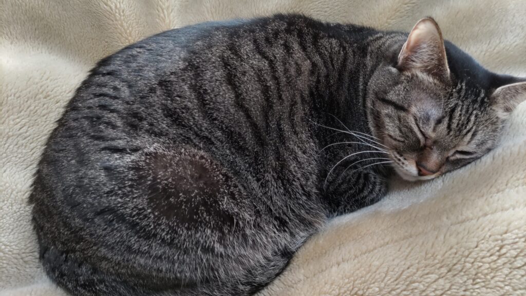 もちこさんは毛布が大好きなので、気が付いたら近くで寝ています。目の調子があんまりよくないんだよね。もうすぐ7歳になってしまいます。最近ちょっと太りすぎですね。