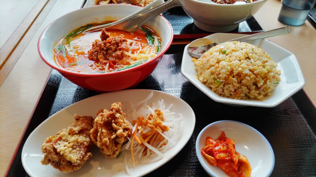 私は台湾ラーメンとチャーハンのセット、嫁は台湾ラーメンと油淋鶏のセットでした。