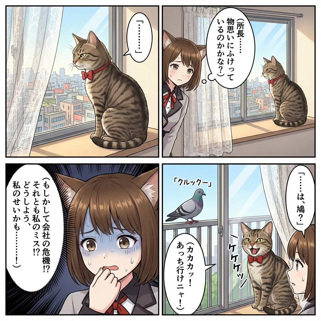 もちこさんが、何やら窓の外を気にしていたので、てっきり感傷にふけっているものと思っていたら、どうやら近くに鳩が来ていて監視をしていたみたいです・・・。(お疲れ様です・・・)