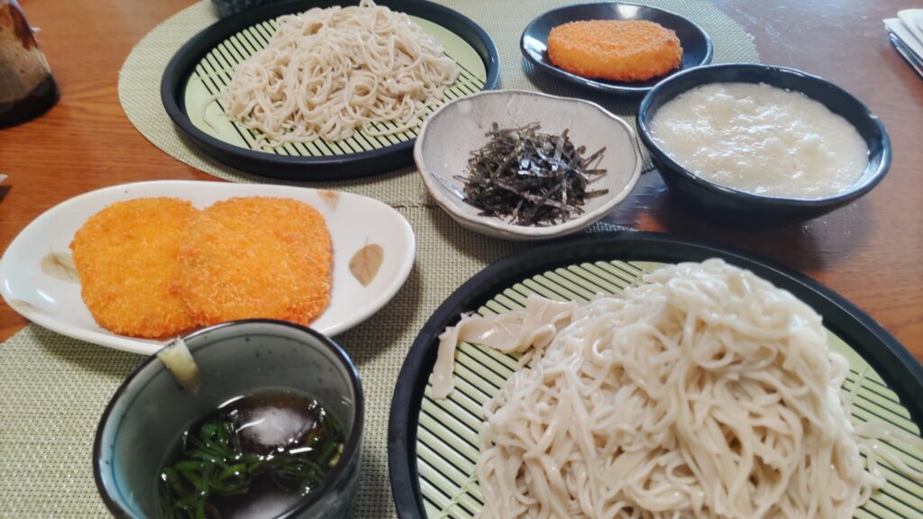 帰りに、鮮ど市場に寄って食料品を買い込み、お昼は久しぶりにそばでも打ってみることに・・・。