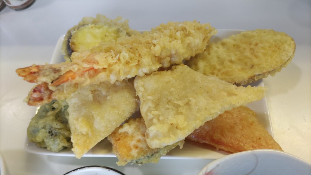野菜が中心なのですが、エビや鶏肉も入っていて揚げたては美味しいですね。