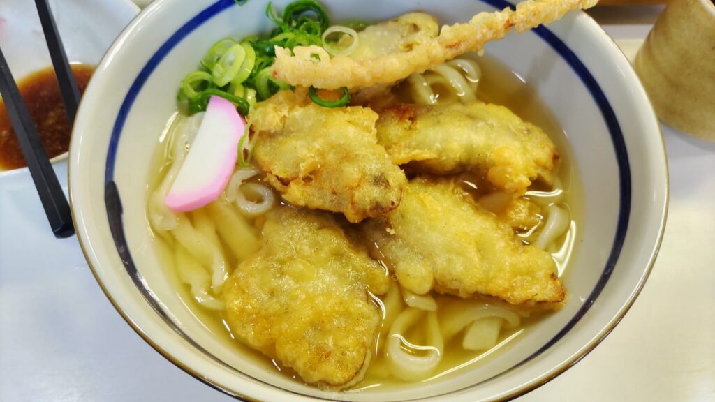 ここのうどんは手打ちで、資さんみたいに柔いわけでもなく、讃岐みたいに腰が強いでもなく、絶妙のもちもち感なんですよね・・・。