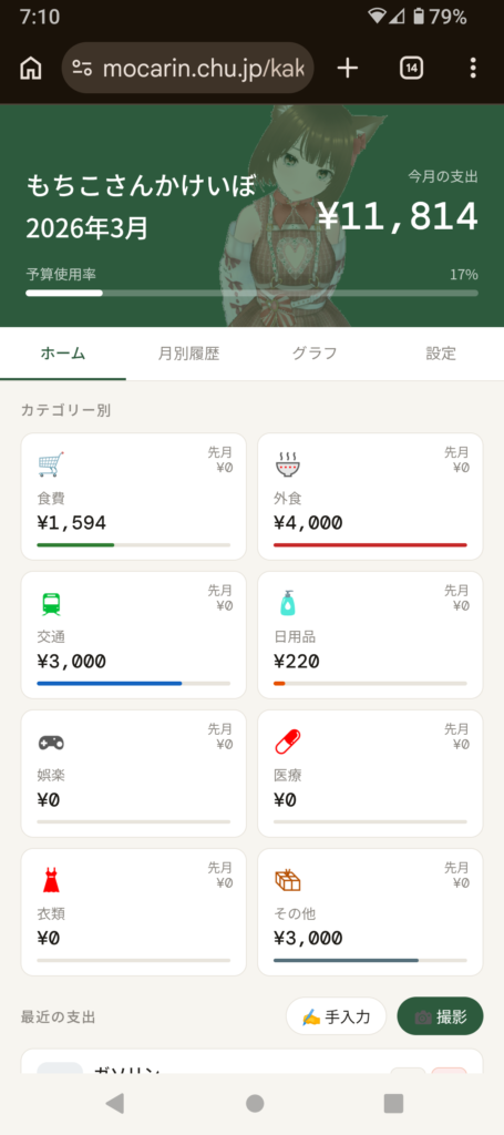 相変わらずもちこさんに絡んだアプリなんですが、レシートを撮影すると自動で読み込んで記録するアプリです。